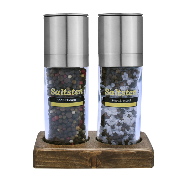 نمک و فلفل و فلفل 4 رنگ سالتستن در بسته بندی240 گرمی گرایندری شیشه ای، با پایه نگهدارنده چوبی از محصولات صد در صد طبیعی و سالم مجموعه سالتستن می باشد که مستقیما از دل معدن به صورت تکه های بزرگ استخراج شده و به صورت دانه بندی گرانول خرد میشود.این محصول کاملا ارگانیک بوده و هیچ گونه افزودنی شیمیایی و نگهدارنده به آن اضافه نشده است .ظرف شیشه ای این محصول قابل استفاده مجدد میباشد