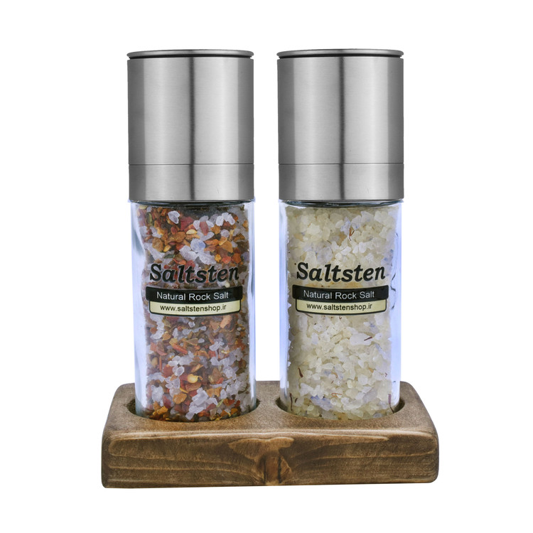 نمک چیلی ونمک زعفران سالتستن در بسته بندی240 گرمی گرایندری شیشه ای، با پایه نگهدارنده چوبی از محصولات صد در صد طبیعی و سالم مجموعه سالتستن می باشد که مستقیما از دل معدن به صورت تکه های بزرگ استخراج شده و به صورت دانه بندی گرانول خرد میشود.این محصول کاملا ارگانیک بوده و هیچ گونه افزودنی شیمیایی و نگهدارنده به آن اضافه نشده است .ظرف شیشه ای این محصول قابل استفاده مجدد میباشد