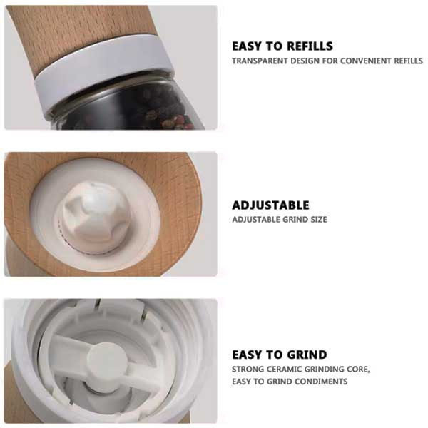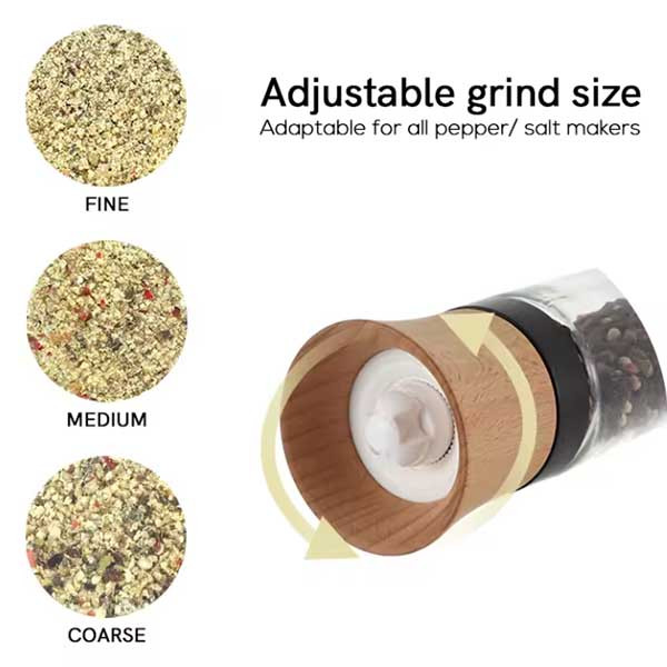 ادویه ساب سالتستن مدلC-004:فلفل و نمک ساب با درب چوبی دارای تیغه هایی از جنس سرامیک و محفظه ای است که بتوانید نمک، فلفل یا حتی تخم مابقی ادویه جات را به داخل آن بریزید و تنها توسط چرخاندن یک پیچ و به صورت دستی ادویه هایتان رابسابید. جنس بدنه شیشه و جنس درب ادویه ساب از مواد درجه 1میباشد.