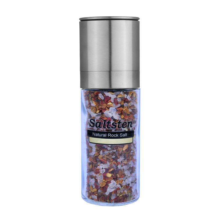 نمک چیلی سالتستن در بسته بندی240 گرمی گرایندری شیشه ای، از محصولات صد در صد طبیعی و سالم مجموعه سالتستن می باشد که مستقیما از دل معدن به صورت تکه های بزرگ استخراج شده و به صورت دانه بندی گرانول خرد میشود.این محصول کاملا ارگانیک بوده و هیچ گونه افزودنی شیمیایی و نگهدارنده به آن اضافه نشده است .ظرف شیشه ای این محصول قابل استفاده مجدد میباشد.