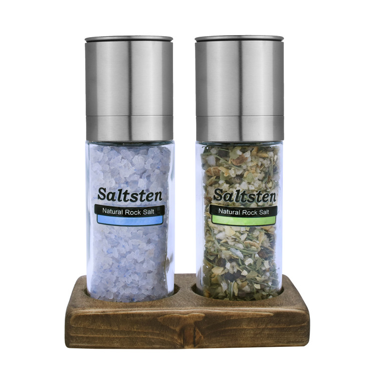 نمک آبی و نمک معطر سالتستن در بسته بندی240 گرمی گرایندری شیشه ای، با پایه نگهدارنده چوبی از محصولات صد در صد طبیعی و سالم مجموعه سالتستن می باشد که مستقیما از دل معدن به صورت تکه های بزرگ استخراج شده و به صورت دانه بندی گرانول خرد میشود.این محصول کاملا ارگانیک بوده و هیچ گونه افزودنی شیمیایی و نگهدارنده به آن اضافه نشده است .ظرف شیشه ای این محصول قابل استفاده مجدد میباشد